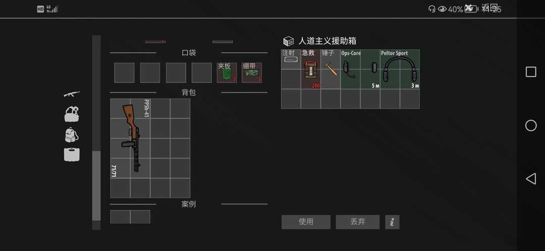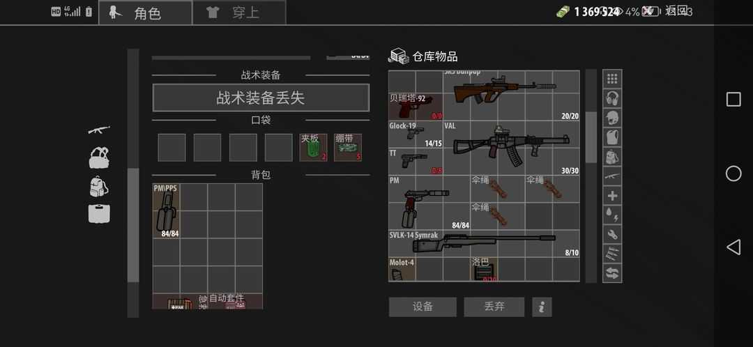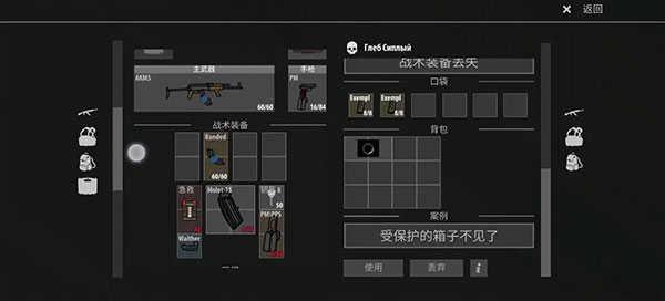 和任务一同理可以把任务物品丢出背包再拾取(先在军方商店购买全套任务物品一把pp波波莎,两个三十五发弹夹,一盒7.62*25子弹,建议森林地图,可以不受npc干扰,如果手持pp波波莎无法丢出,可以击杀一个有主武器的npc并装上他的武器,即可完成此任务)。