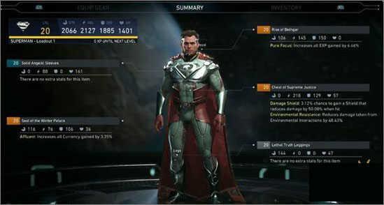 1、游戏中有成百上千种物品可以获取,每项物品的影响能力也不同。除了对角色属性的影响外,还有一些稀有装备有一些特殊效果,比如 新的视觉特效,或者增加每场战斗中获得金币数量等。如果能够收集到完整的一整套装备,还会得到额外的增益,比如增加蝙蝠侠蝙蝠镖的射程。