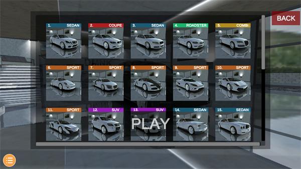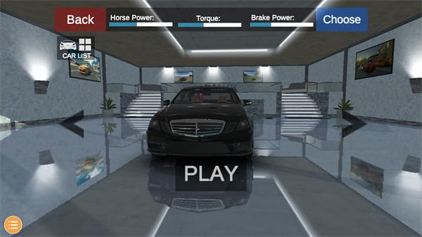 1、打开欧洲豪车模拟器应用程序,并进入主菜单页面。