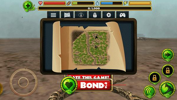 2、地图上有一个爱心和一个问号,先去爱心的地方,有一只长得一样的蛇,遇到后,点击屏幕下方爱心的选项;