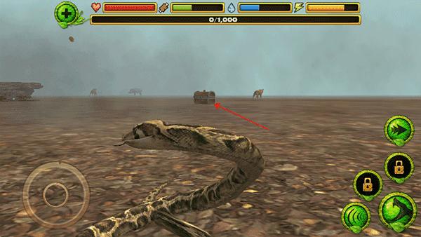 2、点击右下角的蛇头图标可以控制蟒蛇发起撕咬攻击。