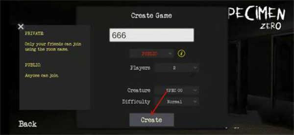2、设置房间难度、玩家人数、地图、生物等各项内容后,填入房间名称即可点击创建
