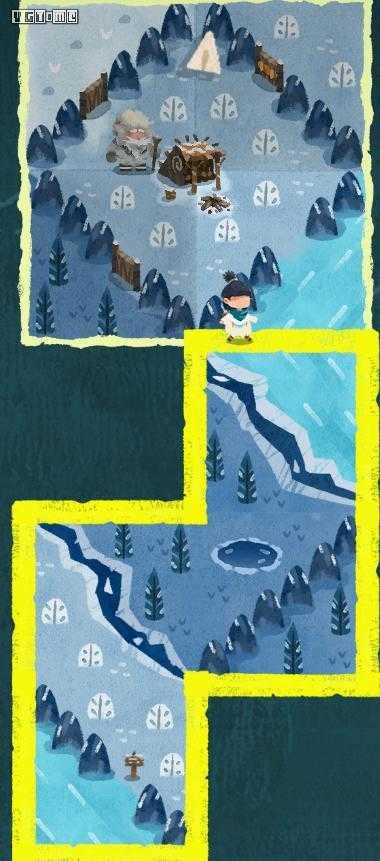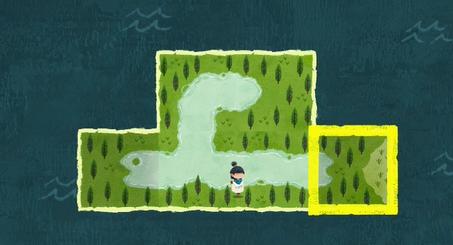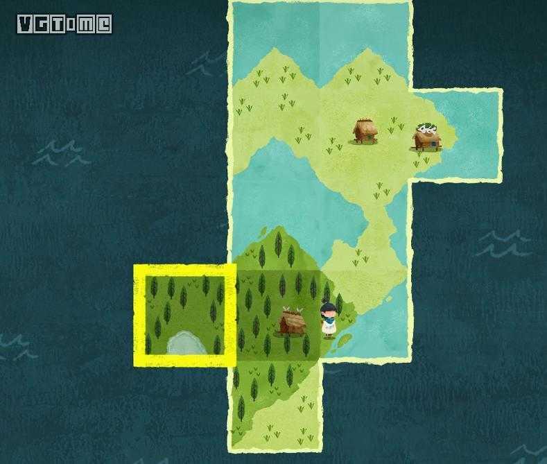 树林中同样有一个白色碎片,将其拼入后会出现一个新的 NPC “阿伯”。阿伯找不到回家的路,卡朵需要将阿伯所在的版块拼到此前房子的东边。