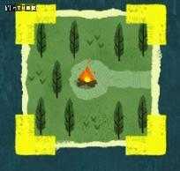 此时回到“帐篷”路牌处,将两个弯路版块按下图拼出,帐篷就出现了。