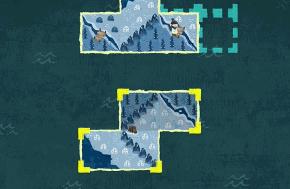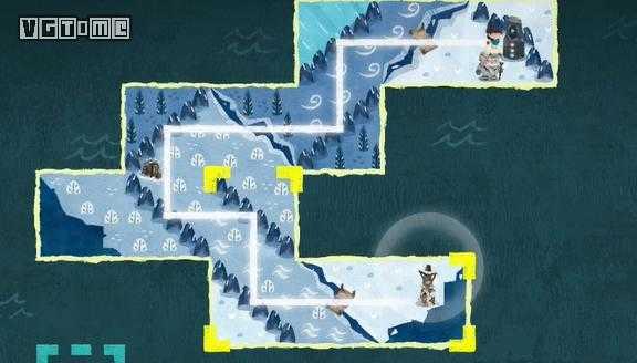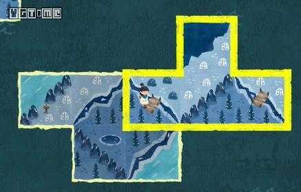 不同的地图世界里暗藏玄机,隐秘之处可能就是地图碎片散布之处。观察这些地图后,卡朵就可以依赖自己的能力,将地图旋转,首尾相接,连成一片新大陆。这片大陆没有指定的方向,只有卡朵自己用手将这些碎片连起,方可到达彼方。