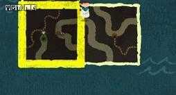 第二步将蚯蚓连接过来把大石块捣破,如图所示: