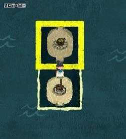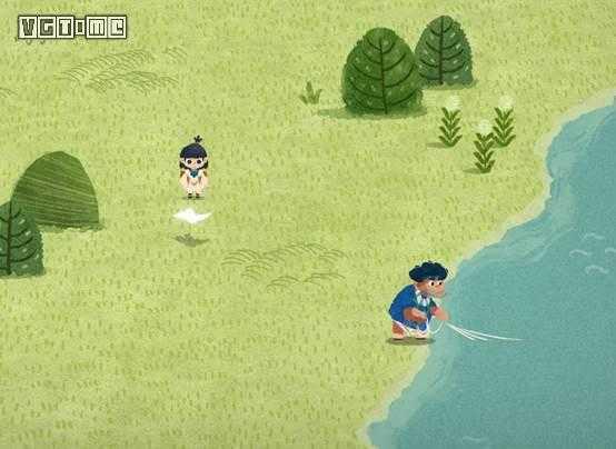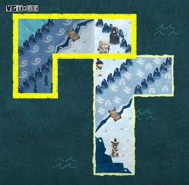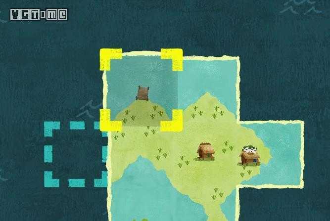 完成教学内容后,卡朵能够在一个渔夫边上捡到闪着白光的碎片,将其与现有地图拼接,形成新的地图,卡朵就能看到房屋出现在身边。