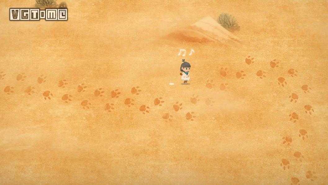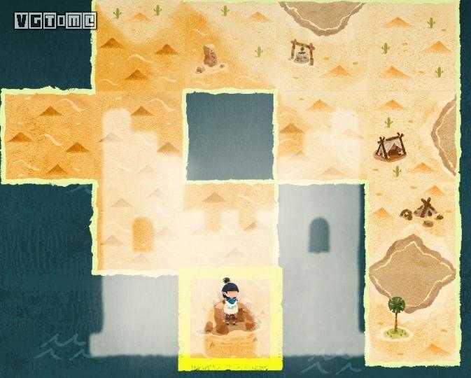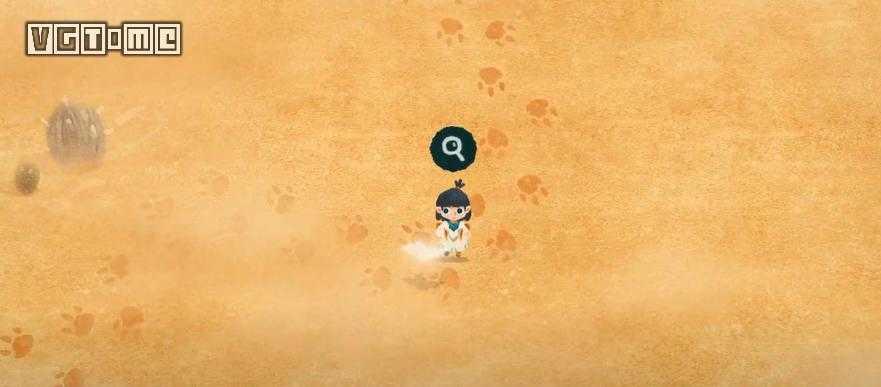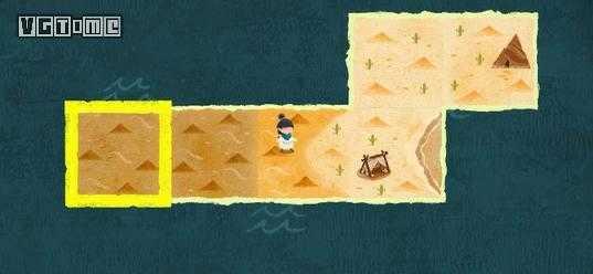 黄沙中刮过风后地面上会出现一串脚印,卡朵按照脚印前进即可,注意版块拼合后下一个版块的脚印必须能够和目前所在板块的脚印串联起来。重复数次后便能解开谜题,拿到一个新的碎片。