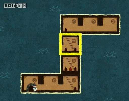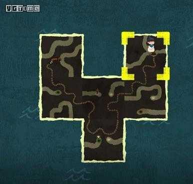之后卡朵用拿到深色密林版块按图示拼合,接着来到一个树洞前,进入其中,来到地下隧道。