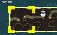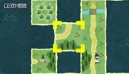 之后卡朵会遇到一个分叉路。卡朵先前往小桥的方向,由路牌指示可知,要将一条笔直小路的版块拼入。抵达小桥后,卡朵能在桥上发现新的弯曲小路的碎片。