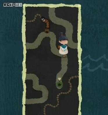 来到新区域后和猫头鹰对话,按照它的指示卡朵将河流拼成一个圆圈,出现新 NPC 奇尔布。