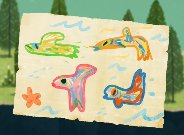进入森林的房子中,和夫妇对话后,调查墙壁上发光的贝壳,发现新的碎片。将其拼入形成湖泊,随后去湖边寻找她们的女儿夏南。