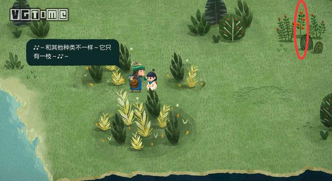 和位于下图所示位置的图雅阿姨交谈,得知需要寻找一个叫做甜甜果的食物。