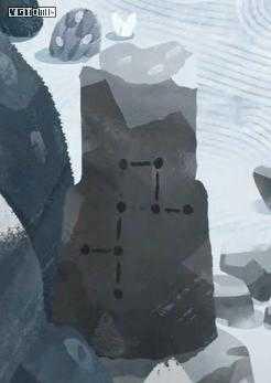 走出隧道后卡朵卡朵将四块角落处有一个石碑的版块按下图所示拼出来,能看到一个奇特图腾。