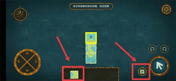 8、在探索区域获得新地图后,点击地图按钮进入地图页面,然后选中新地图版块进行拼接