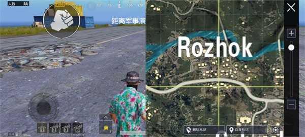 开局跳R城,个人推荐跳沿河的这一边,不选择山靠学校的另一边。(注意这是4排选择)。也就是地图中山上蓝房,仓库,因为考虑4排关系,这一边房子多,同理资源更多。而且这一边由上图朝我背后是高度递减关系,所以跳高点有利于信息的收集。另外也是因为学校跳伞的人比较多,在学校旁边的一个野点如下图,