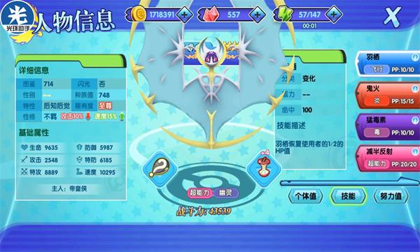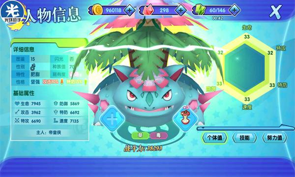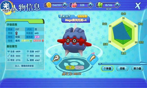 4、然后,是开局送的皮卡丘,如果你是六元党,就用闪电鸟,零元党的话就用开局的皮卡丘,电鸟和皮神都是特攻高,速度快,收割一流(试炼里面),要带一只。