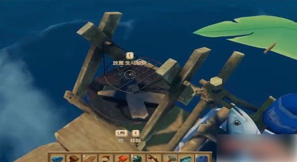 注意,不要把任何重要制作物品放在船边上(网除外,那东西只能放边上,后面会提到),因为鲨鱼如果不幸咬到放东西的板子,他不会在乎上面是什么,在它嘴里都是“鸡肉味嘎嘣脆”。