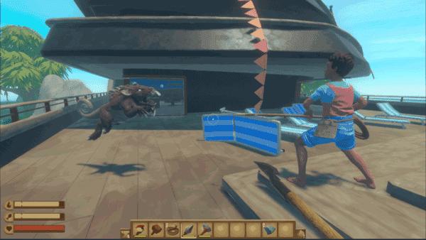 比如是地基,木板,楼梯,柱子等,一只创造锤就能解决任何与建造相关的问题。当鲨鱼攻击地基的时候要及时利用木质矛去反击,一来通过事后修补能减少相比建造木筏来说更多资源的消耗,二来鲨鱼在收到一定程度的攻击后便会死亡,在尸体消失的这段时间里,可以不受危险的在附近周围搜刮资源,当然别忘记了还有鲨鱼肉可以吃。