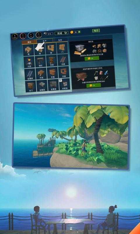 最初资源有限,需要利用钩爪获取资源,有时候还能遇到各种小岛屿,利用船锚使木筏停下来,建造一把斧头可以上去采集更多的资源,后期实力强大起来,可以通过安装捕网道具在海面上能更被动化的获取资源。
