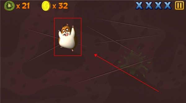 1、游戏的玩法就跟传统的切水果玩法是一样的,而最特别的就是玩家在切换水果的过程中会出现一只仓鼠,玩家需要小心切到小仓鼠,因为当你切到一个时,右上角就会显示出一个叉叉,当集齐四个叉叉时游戏就会结束。