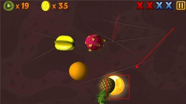 1、在屏幕当中会显示切水果与金币的数量,有时还会蹦出来一个松鼠,千万不到斩到松鼠,右上角则会显示掉落水果的数量,超过四个就意味着游玩失败