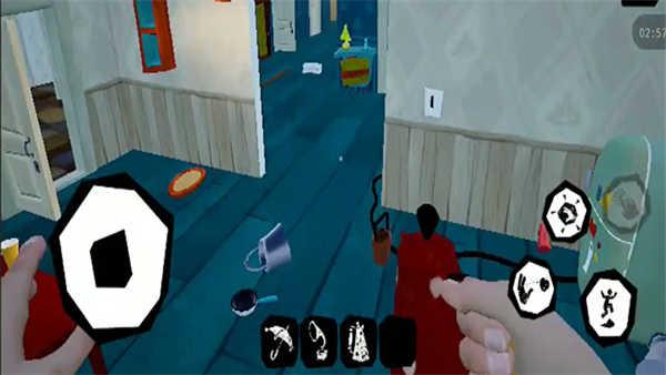 3、玩家在游戏中也能利用邻居家里的各种道具给邻居制造麻烦以便于自己逃跑,他家里的水壶、冰箱、椅子、弹弓等等,只要你想得到,全部都是你整蛊邻居的利器。