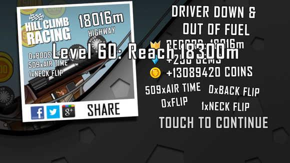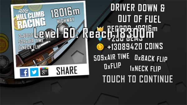 结语:作为一款经典的赛车游戏,拥有超多的车辆以及超多的地图,氪度也不高,可以用免费的广告得到大量金币,相对许多需要充值才能好好玩的赛车类游戏,登山赛车无论如何都值得一玩!