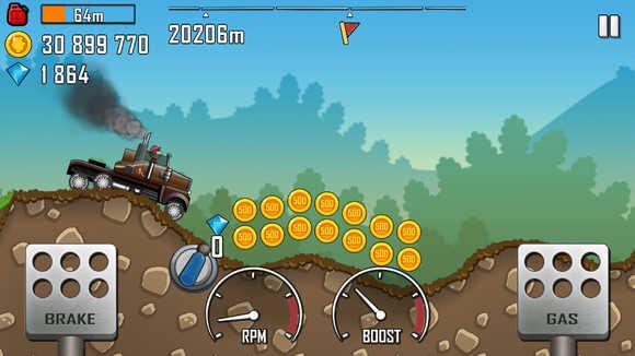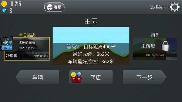 6、登山赛车游戏中玩家还可以收集钻石和金币,金币和钻石可以帮助玩家解锁关卡或者汽车;