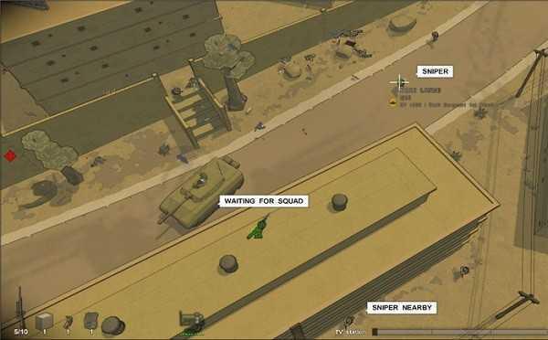 小队图标在屏幕右下角如图所示,其中右下角的红色十字表示队伍中有医疗兵AI。(顺便提一句,F9是查看AI队员的配置,不过这是以前版本的事情了,虽然这个选项有保留。)