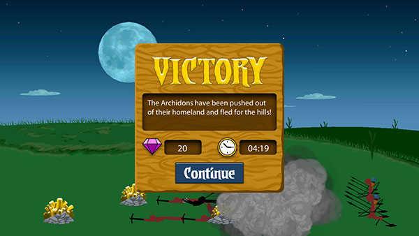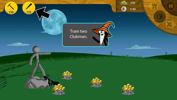 第三关:剑士关卡,前期养6个矿工,剑士来了就驻守,经济上来了优先养弓箭手(3个起步)。