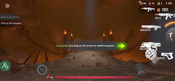 在屏幕的最右边有一个,有一个按键,滑动它,然后就会出现很多武器,滑动到你想选择的武器即可。