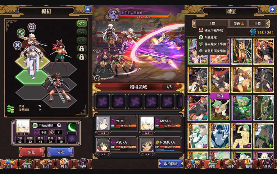 【忍者大师闪乱神乐NEW LINK】相比其他手游不需要有太复杂的思考,但仍需要粗浅的队伍搭配概念,每此关卡上阵五位女忍者,以角色为主不能重复上场。