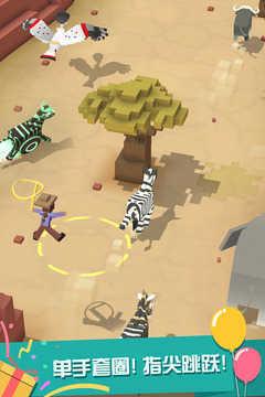 1、开玩画面中,人物会骑驾着小野牛,带着套索在地面上奔跑,按着画面不松开,在距前方的动物较近时,向前一滑,瞬间跳入。