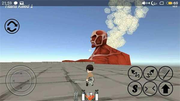 超大型巨人(Colossal Titan):随着天空一声巨响,超大型巨人闪亮登场,伴随着那令人亮瞎眼圣光,超大型巨人举起了那巨灵神掌,以毁天灭地之势拍向了城墙上惊慌的玩家们。