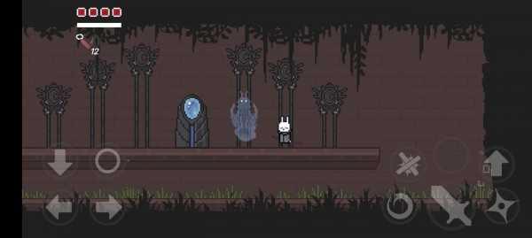 进去之后会拿到个饰品(皇冠)饰品后面可以穿戴(皇冠的作用是增加游戏难度,你只有一格血,但会有特效),地面上会有个月亮雕像,贴近雕像按O键,可以将雕像放回柱子上,然后三个柱子上出现血球(每凑齐三个可以多一颗血),收集完就可以回如图所示位置按O键返回。