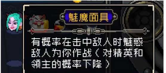 ①恐惧面具:击杀敌人后概率使敌人附近怪物恐惧,(恐惧效果会让怪物原地复读很小的左右徘徊,按理说应该远离玩家啊hhh)