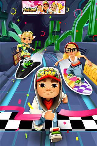地铁跑酷是一款风靡全球的跑酷游戏,奢华的人物外形,炫酷的动作以及不同的剧情。玩家在游戏中畅想各种同台竞技模式,与好友1v1,新增多种地图,带你领略不同城市的地域风情,还能沿路收集各种小奖励。小伙伴们还等什么了,一起来进 行这紧张刺激的大冒险吧,赶快加入地铁跑酷吧.