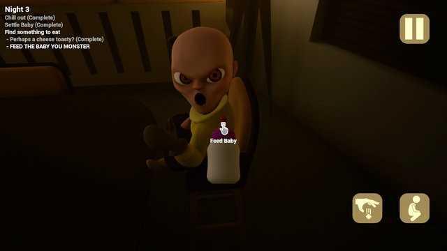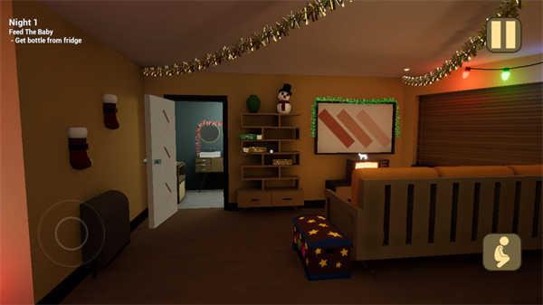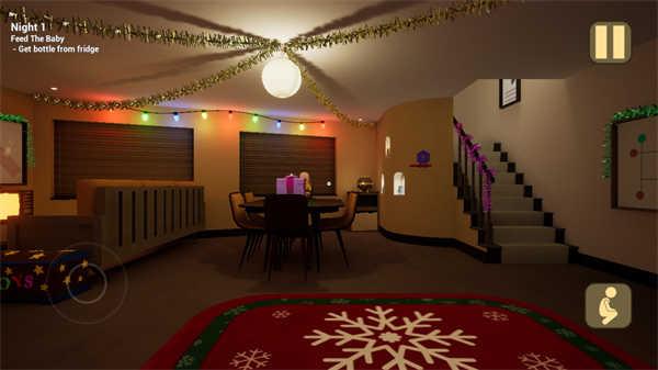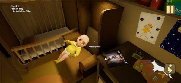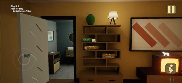接下来是换尿布,最关键的时刻到了,胆小的人做好心理准备,你拿到尿布刚要给他换的时候会突然变成恶魔把你吓倒,然后开始召唤玩具攻击你,你必须赶紧来到你自己的房间,拿出金色奶嘴给他戴上,那时候他就会突然倒下,你就得带着他去婴儿房,给他读绘本,然后第1个故事结局达成了