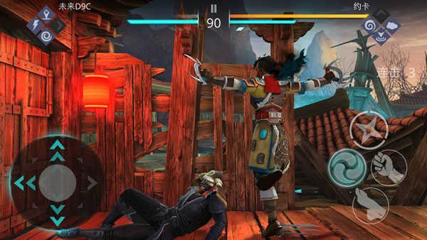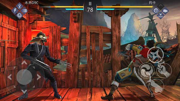 7、暗影格斗3还加入了全新的“魔法”控制能力,我们在战斗的时候,可以点击按钮进入“暗影效果”,在此效果下,背景直接变黑暗,自己也变成了隐藏在黑暗中的杀手。