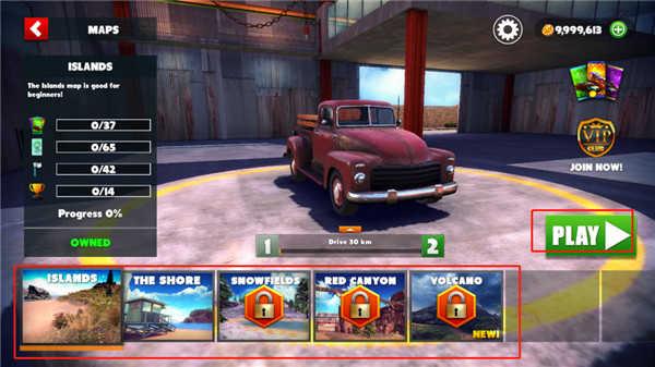 1、打开在本站下载的脱离道路破解版无限车最新版本游戏,进入游戏首页,选择你想要的游戏场景,点击开始游戏;