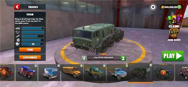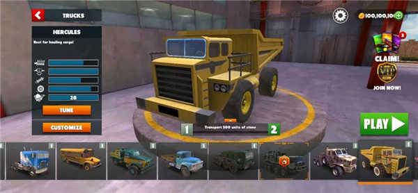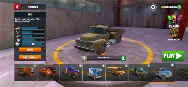 从游戏中的界面来看,除了可以开越野车,还可以使用货车来运输货物,游戏中提供了多种操作方式,有常规的四个方向键,还有刹车、加速等,其他的特定操作按键不是每一个赛车都有的,所以玩家需要根据自己的车型去使用它们,最终的目的就是努力赚金币,通过各种任务、各种玩法活动,达到你的目的