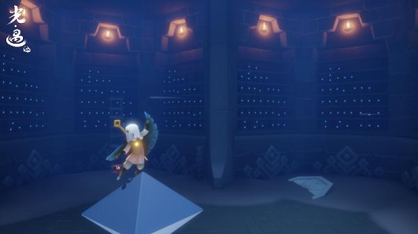 在底层,旅人们四周开始浮现出闪烁的星火。原本半埋在地上的石盘升起成为浮动台阶,墙上的瓦罐散发着点点荧光。初始层和底层都有着隐藏的大门,需要旅人们和小伙伴协作才能打开。