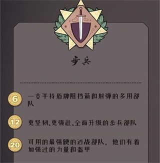 短剑民兵:自家初始两队或收编指挥官得到,初始兵种,属性极差,只能加以投资升级。
