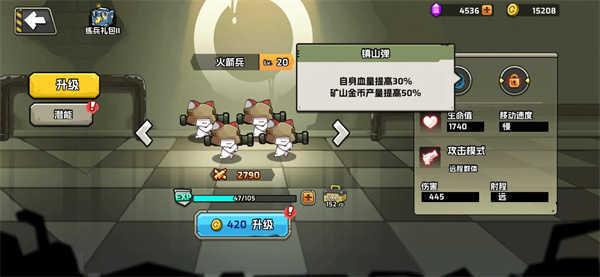 5.游戏金币的获取、大大们刚开始优先把如图以下2个兵营里的等级优先升到20级、这样可以提高矿井里生产金币数量。