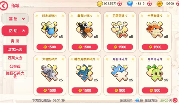 10、万能碎片很重要,最好要用给你觉得能长期使用的精灵上。竞技场每天可以购买5次挑战次数来完成积分任务,每天可以获得2个万能碎片哦。