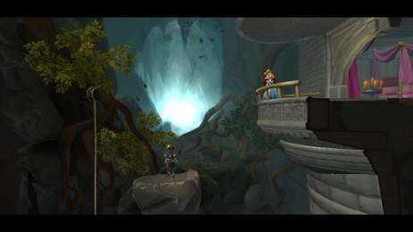 3、在下面的平台上,找到一个能够推动的石头,将其推到左边的平台上,然后跳上去。