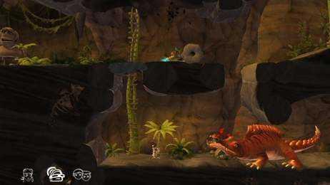 2、在左边的平台上,找到一块能够破坏的石头。使用攻击攻击石头,然后跳到下面的平台上。
