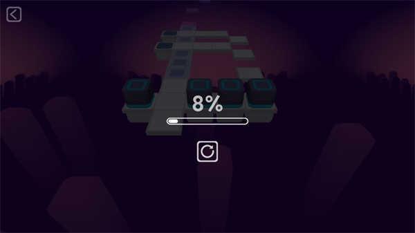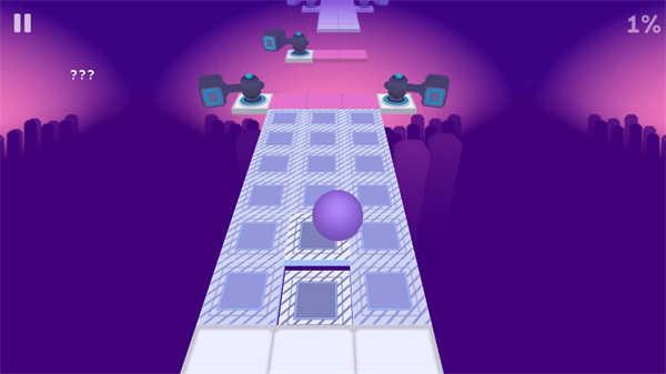 5、场景中会有单个的高台,上边有蓝色的标识,这也是弹跳的标识,跳起来之后控制左右方向,然后跳动到下一个落脚点,有时候高台中的台阶会进行变化,在变化的同时要迅速做出判断,滑动的快点基本没问题