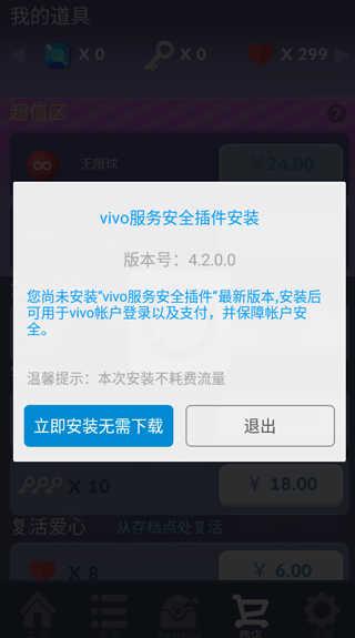 3、点击“快捷支付”,然后会显示未安装插件,点击“退出”即可;